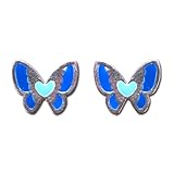 CecisCollection.com T-56356, Petite sterling silver and enamel post earrings featuring a butterfly with dark blue wings and a light blue heart in the center of the body. These earrings are part of the Emily by Tomas children's line. The Emily by Tomas line has been certified as compliant with the Consumer Product Safety Improvement Act of 2008 (CPSIA). ...